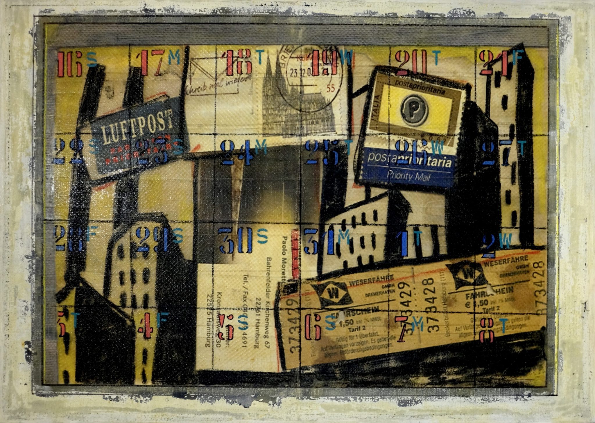 In der Ausstellung „TRASFERTA“ trifft der Mixed-Media-Artist Paolo Moretto auf den Fotokünstler Axel Beyer. Gemeinsam gestalten die befreundeten Künstler den nachtspeicher-Raum. Thematisch geht es beiden um Stadtraum, Reisen und Zeitgeschichtliches, dabei entstehen einige kongeniale Überschneidungen aus beiden Positionen.