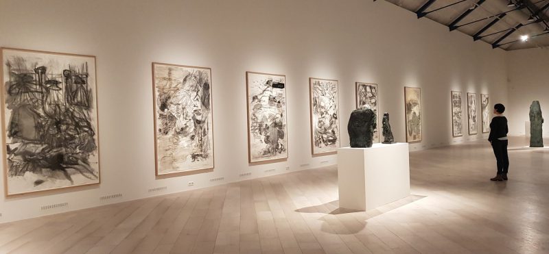 Die Zeichnung erfüllt dabei eine zentrale Rolle. Sie ist für ihn künstlerisch wie intellektuell ein zentrales Medium der Reflexion. Ihr kommt daher in der Ausstellung ein besonderer Stellenwert zu. Neben ausgewählten Bronzen und Masonit-Tafeln werden vor allem Gouachen und großformatige Zeichnungen zu sehen sein, die in ihrer Dichte den Gemälden gleichkommen.