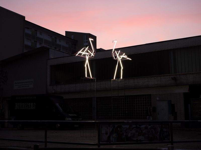 Bereits 2012 stellte der gebürtige Schweizer mit seinem Künstlerduo Géraldine et Tizian in der Affenfaust Galerie, am noch alten Standort, aus. Damals lies das Duo einen Plastikhai im Käfig mittels eines Krans in der Luft schweben. Die „Hommage to Damien Hirst“ ist nicht die einzige Installation des Duos, welche sich im öffentlichen Raum befand. Nun ist der Künstler wieder nach Hamburg zurückgekehrt und studiert seit 2016 bei Anselm Reyle an der HfbK.